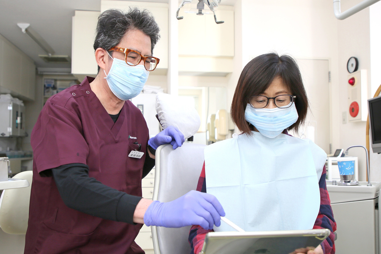 治療中は歯磨きなどセルフケアの方法をレクチャーし、口内炎や知覚過敏などの不快症状がある場合はレーザー治療を実施します。